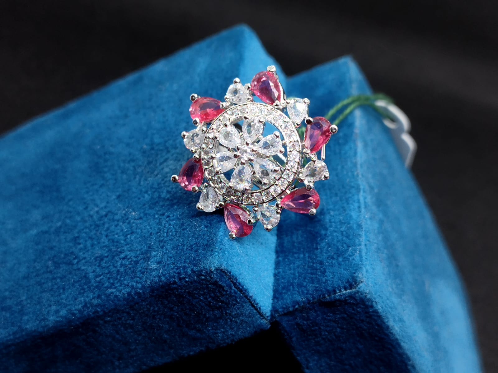 Be the first to review “Designer Floral Pink & White CZ Finger Ring – Bridal & Party Wear”
