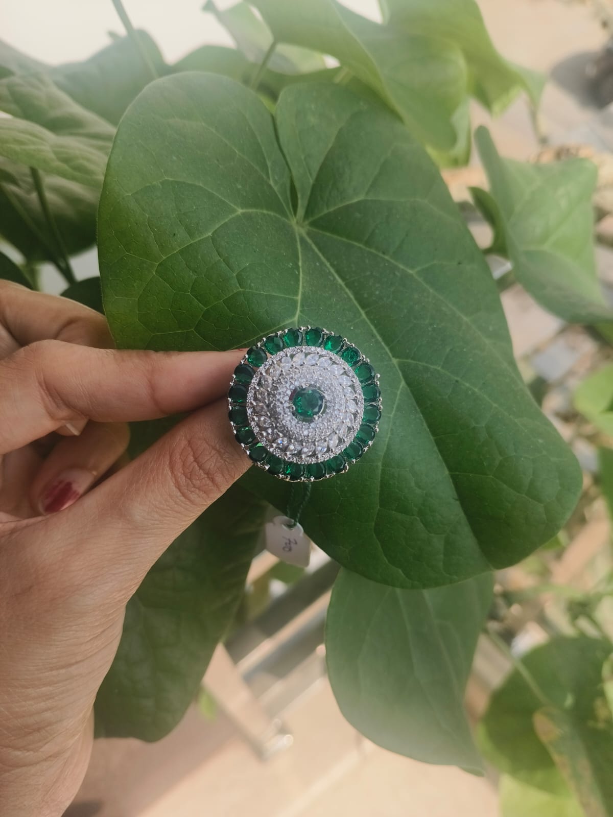 Be the first to review “Round Emerald Green Stone Finger Ring with CZ Diamond Halo”
