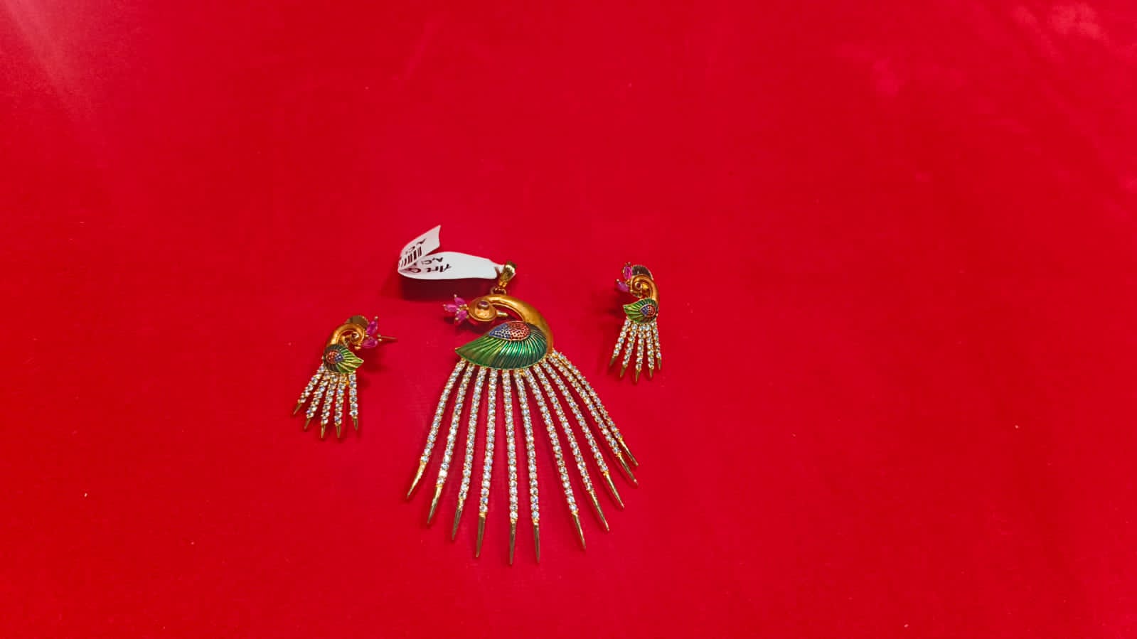 Be the first to review “Traditional Gold-Plated Peacock Pendant Set with Crystal Strands”