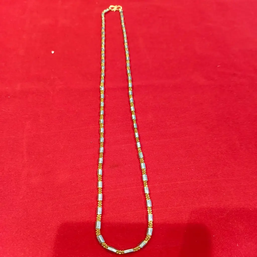 Two-Tone Cylinder Bead Mala Chain | Gold & Silver Finish Necklace for Daily Wear